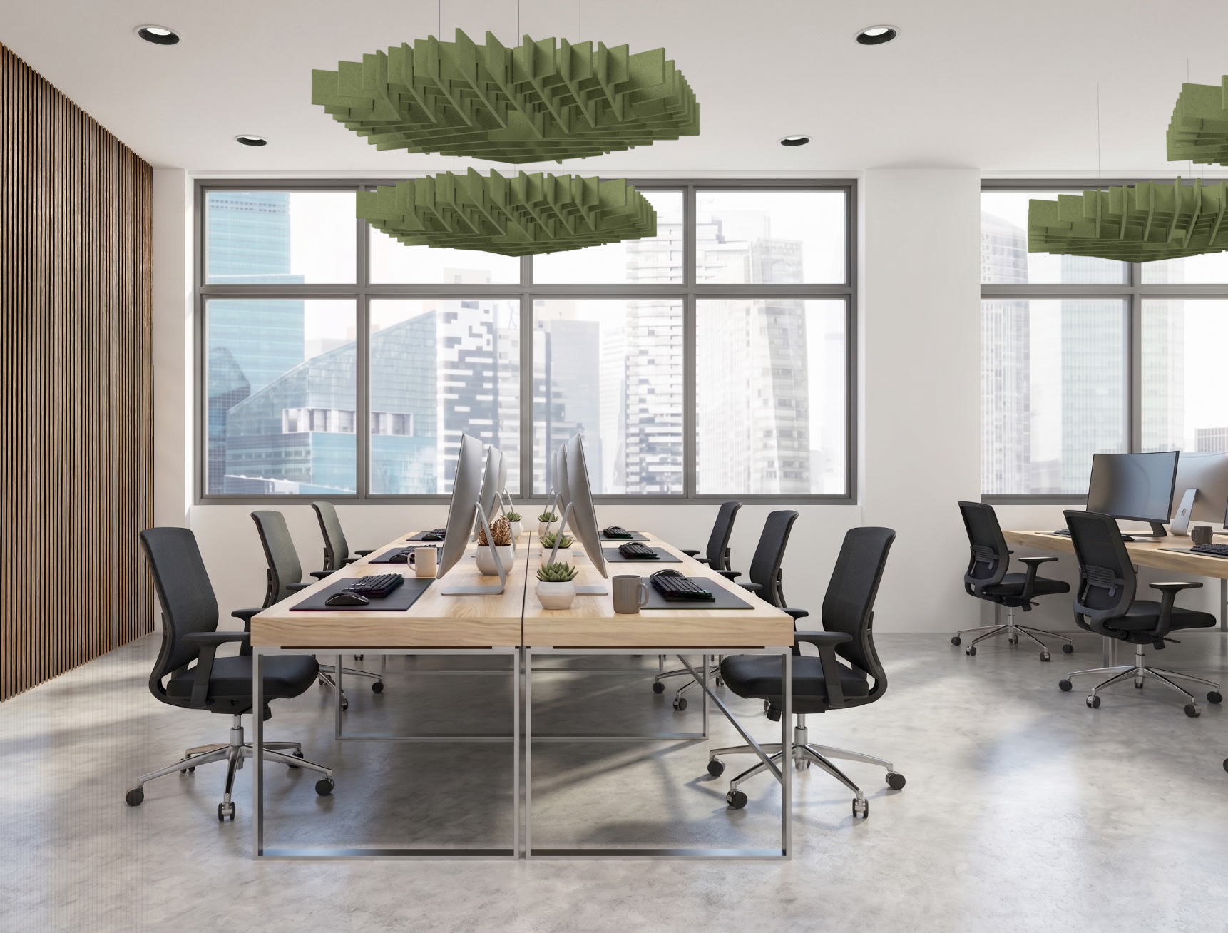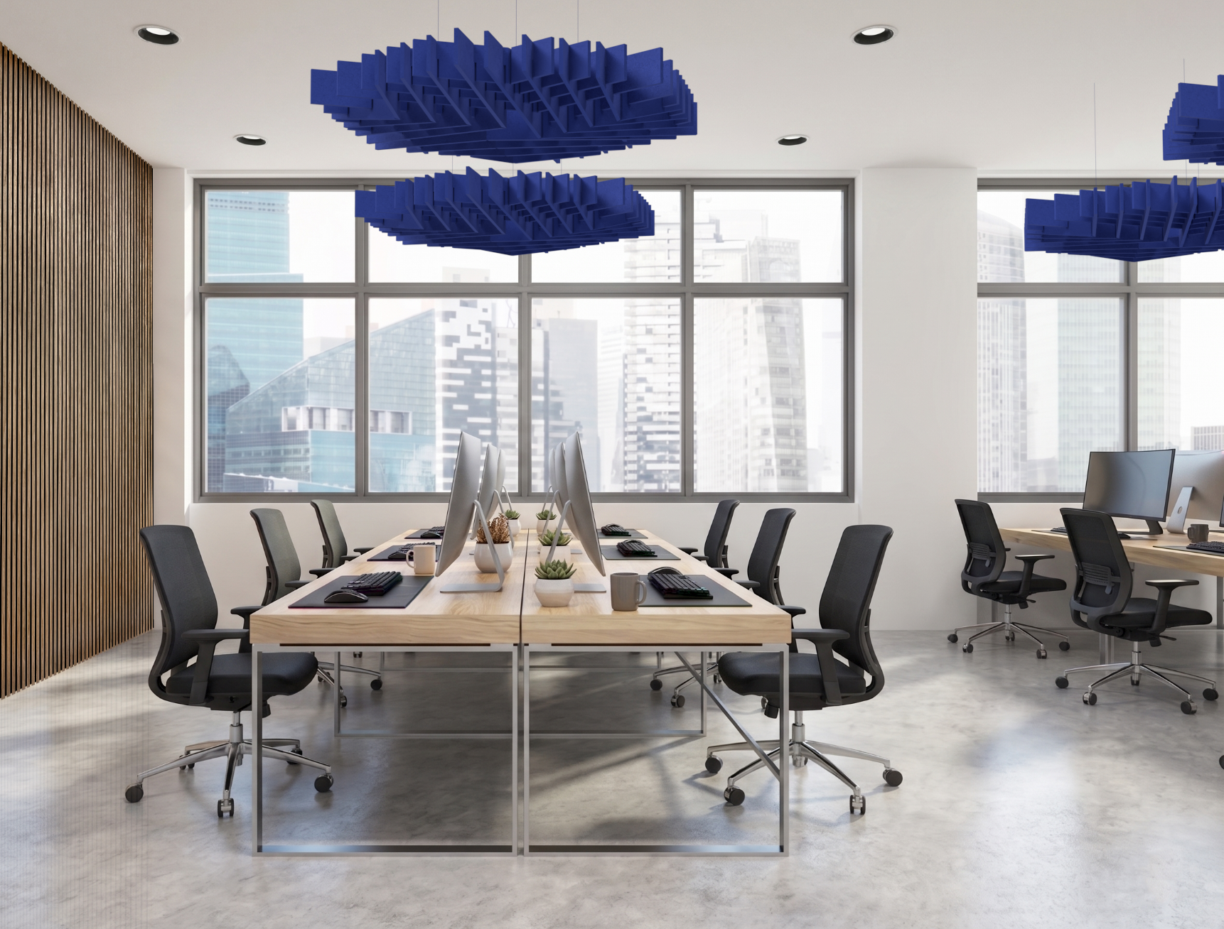 We offer a comprehensive range of ceiling acoustic solutions, including felt baffles, cloud systems, slatted panels, and modular designs compatible with standard ceiling grid or drop ceiling installations. Our solutions cater to various types of ceiling, ensuring flexibility and enhanced sound control for diverse environments.